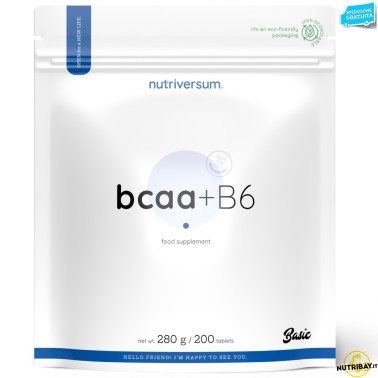 Bcaa+B6 è un integratore targato Nutriversum, a base di aminoacidi ramificati in rapporto 2:1:1 con aggiunta di vitamina B6, in compresse.
