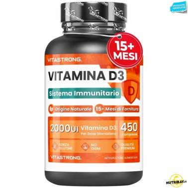 Vitastrong Vitamina D3 è un ottimo integratore di vitamina d3 ad altissimo dosaggio (2000 UI), disponibile in formato convenienza da 450 compresse per un utilizzo di 15 mesi.